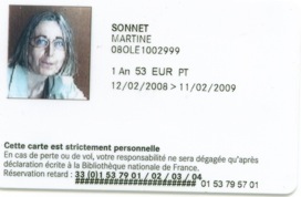 III. 1976 Munie d’une lettre de recommandation de mon maître Daniel Roche, et toute fière, je me fais établir une carte de lectrice à la Bibliothèque nationale, 58 rue de Richelieu, pour y consulter les almanachs parus pendant la Révolution française, sujets de ma maîtrise. Début d’une longue histoire d’amour avec cette bibliothèque que j’adopte même comme grand-mère spirituelle (je n'ai jamais connu aucun de mes grands-parents). Comme j'ai fini d'inscrire les vieux livres de Sainte-Geneviève sur le registre noir, je deviens « collaboratrice occasionnelle à mi-temps » à la BN, salle des catalogues, avec pour mission d’y intercaler des fiches dans les fichiers auteurs. Paulette Perec (épouse de Georges), conservatrice à grandes nattes, cornaque sympathiquement l’équipe d’étudiants/intercaleurs qui s’entendent comme larrons en foire. Nous acquerrons tous une grande maîtrise de l’ordre alphabétique et une belle dextérité au maniement des petites fiches cartonnées 75X125.