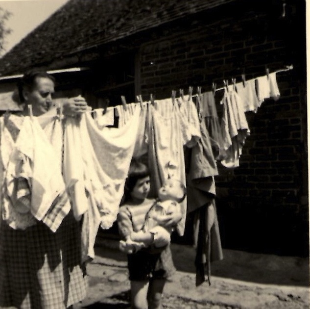 quelle belle et touchante photo ! il y en avait du linge et sans doute pas de machine à laver encore et que dire ces pinces qui finissaient toujours par casser mais le bonheur d’étendre encore un peu au grand air. Mince continuité d’un univers à l’autre que celle d’un prénom.